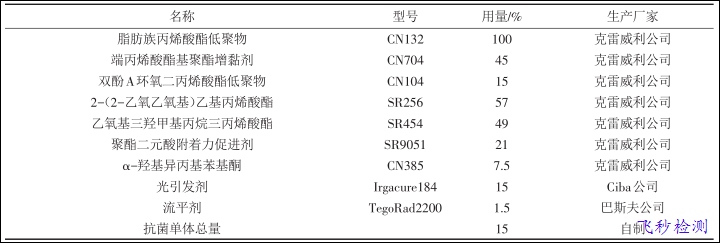 Tab.2 The basic formula of UV curable antimicrobial coating