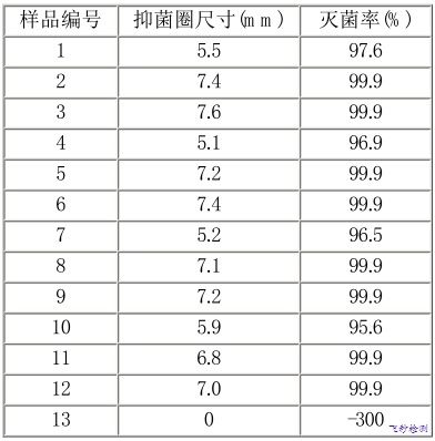 表5 樣品抗菌性試驗(yàn)結(jié)果