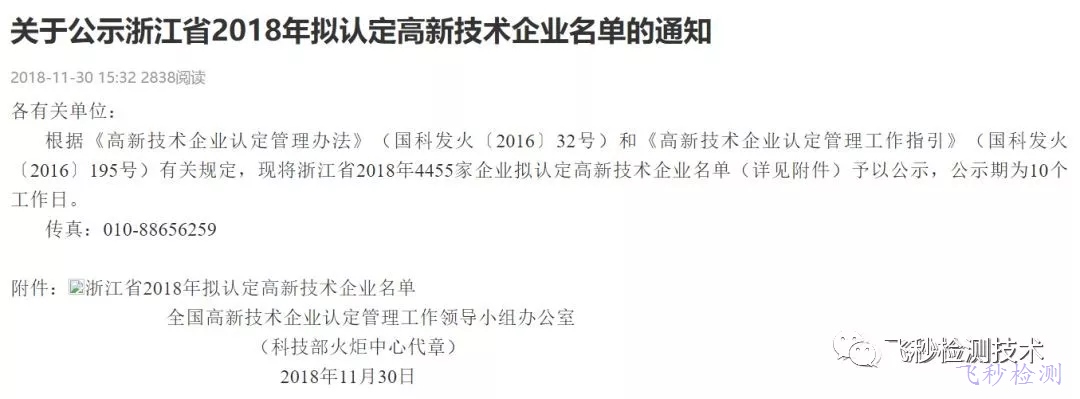 以下是飛秒檢測在浙江省科技廳、全國高新技術(shù)企業(yè)認(rèn)定管理工作領(lǐng)導(dǎo)小組辦公室公示的詳細(xì)信息。