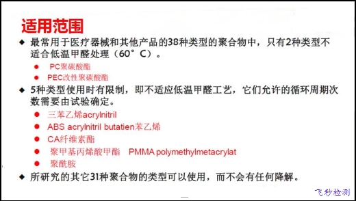 聚碳酸酯類材質具有較強甲醛吸附能,會影響滅菌效果,不適于此方法滅菌