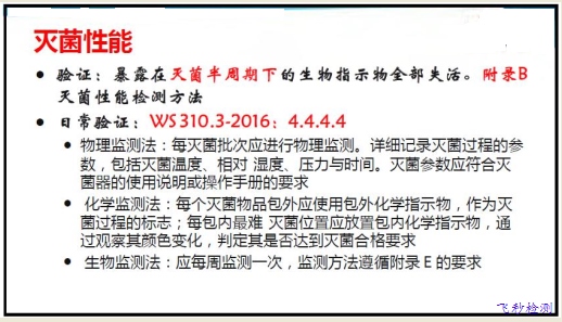 對于滅菌性能的檢測可根據指示劑進行驗證。WS 310.3-2016 4.4.4.4條款,也明確了物理監測、化學監測、生物監測的具體要求。